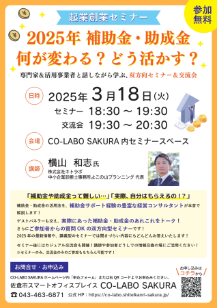 『2025年版 補助金・助成金セミナー』&『カジュアル交流会』開催のお知らせ
