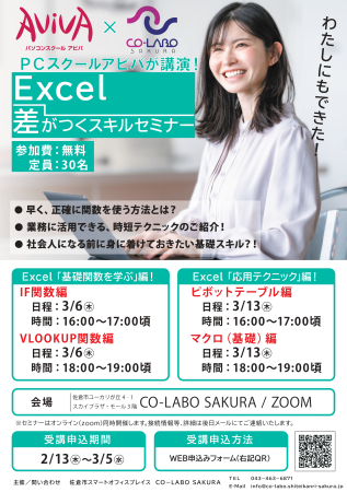 『Excel 差がつくスキルセミナー』開催のお知らせ