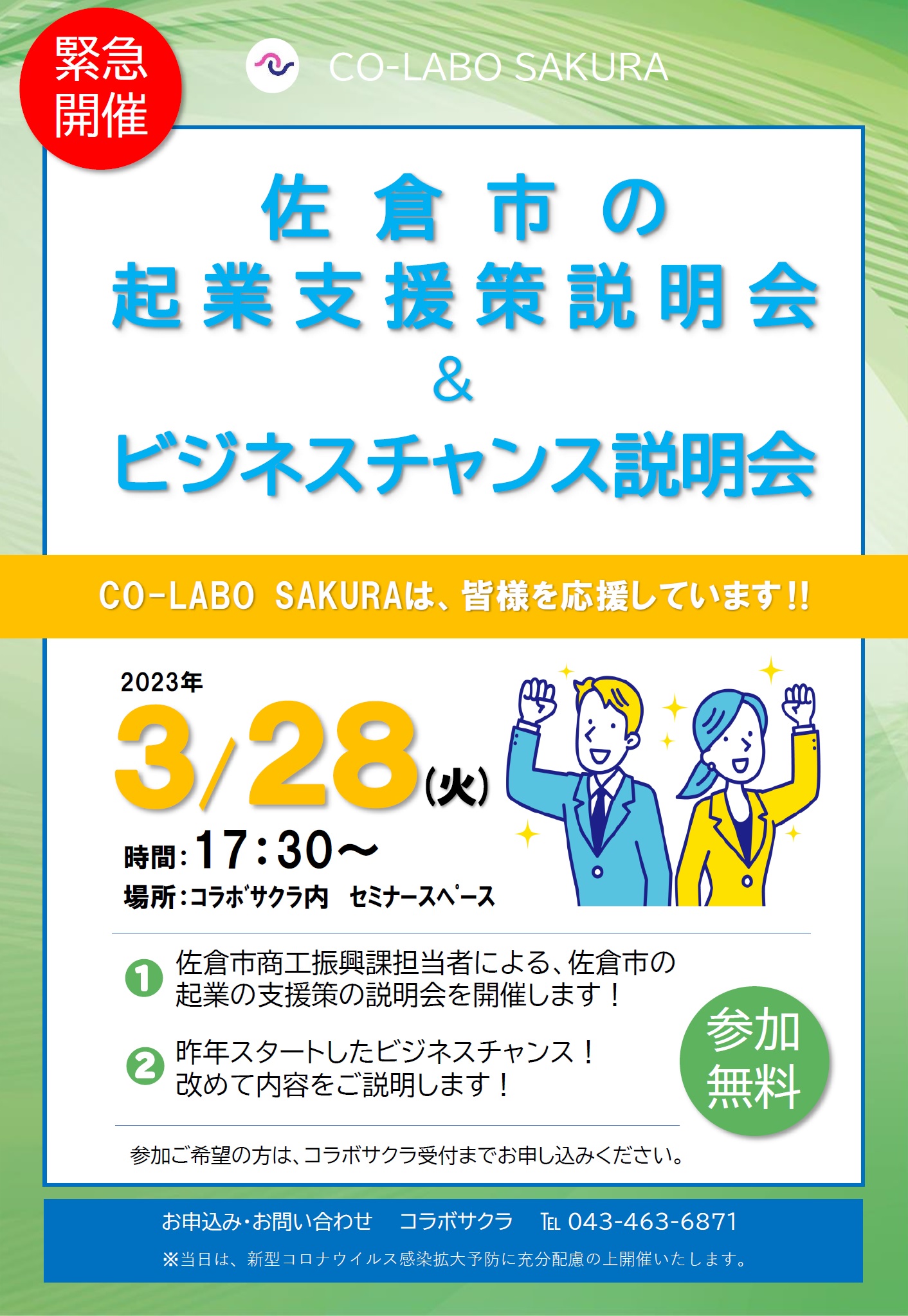 『佐倉市の起業支援策説明会』、『ビジネスチャンス説明会』開催のご案内