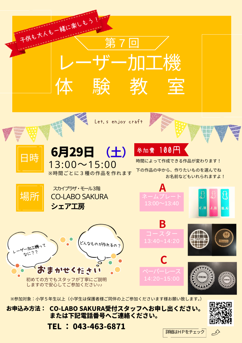 お申込み:CO-LABO SAKURA受付スタッフにお申し出いただくか、下記電話番号へお問い合わせください。